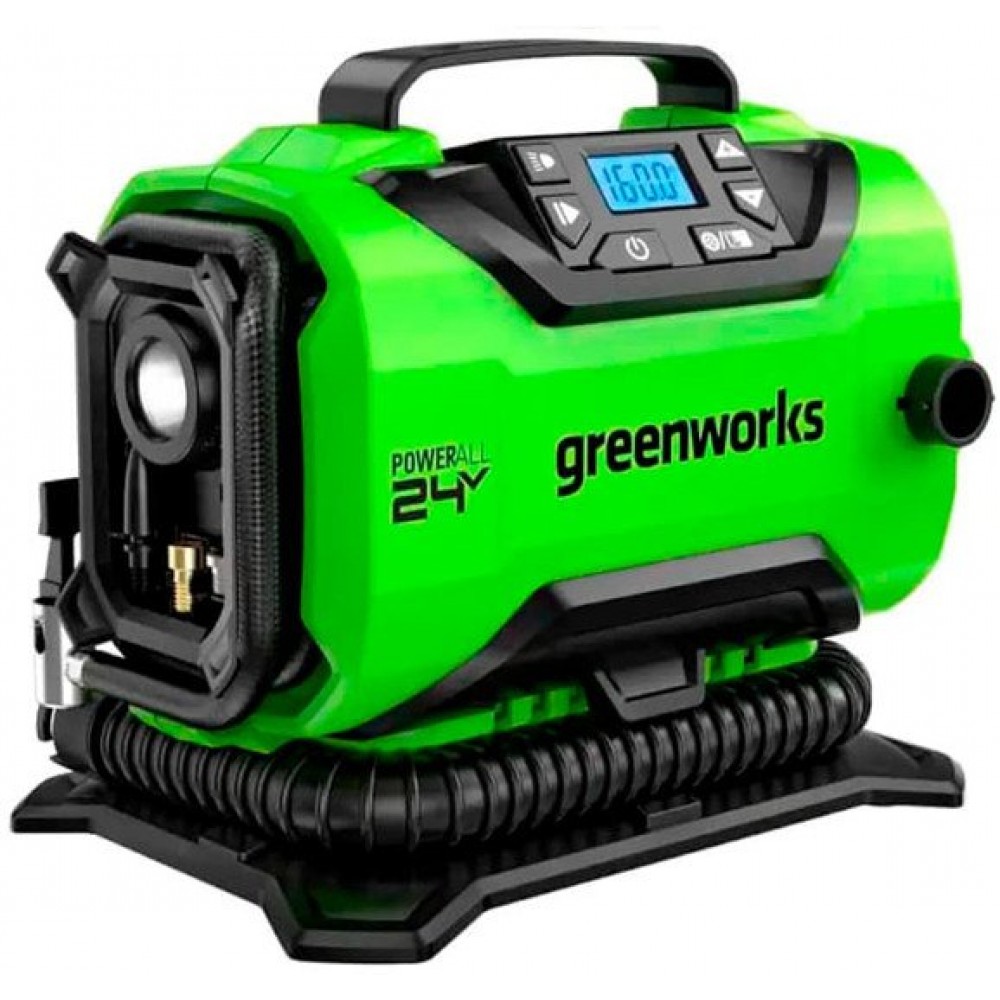 - - Компрессор автомобильный аккумуляторный Greenworks Арт. 3400807, 24 В / 12В;