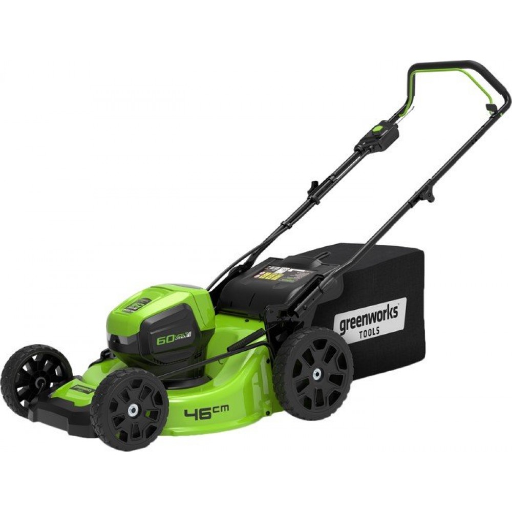 колёсная газонокосилка, аккумуляторный двигатель, работа от аккумулятора, ширина скашивания: 46 см, мягкий травосборник 55 л