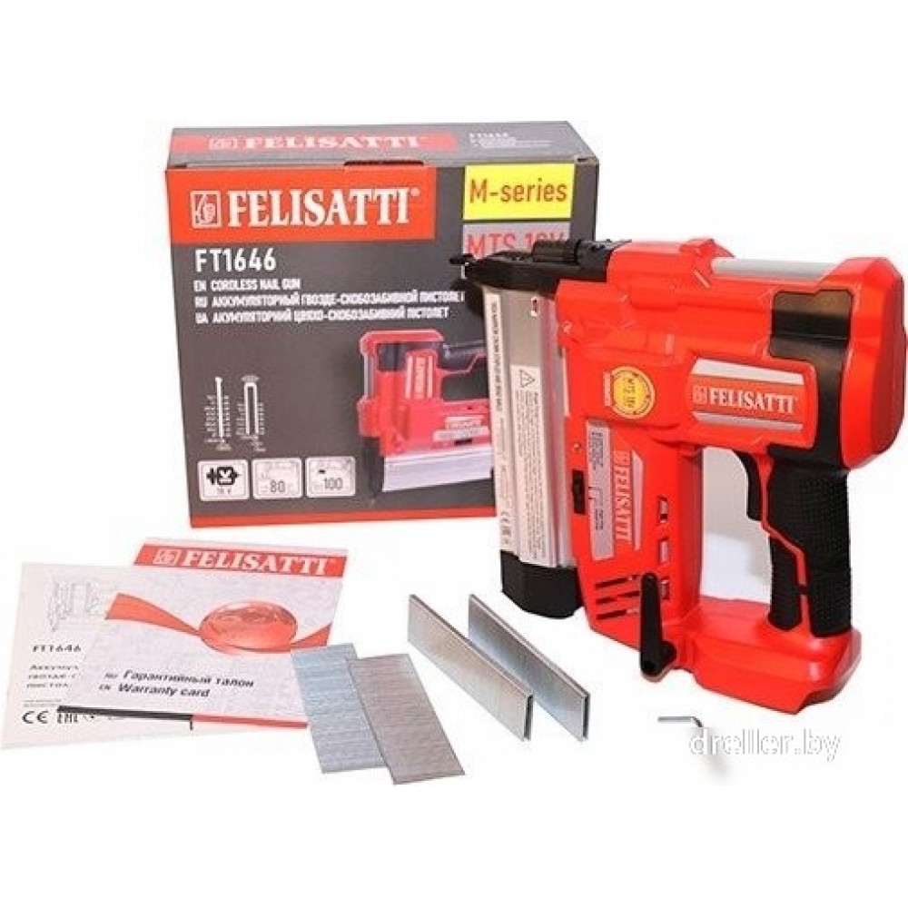 | Комплектация | - Гвоздезабивной пистолет - 1 шт. - Скобы 35 мм - 200 шт. - Гвозди 40 мм - 200 шт. - Инструкция по эксплуатации - 1 шт. |